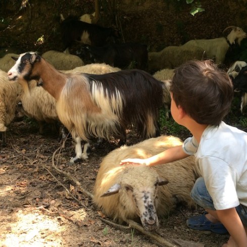 昼の12時、山の中の一軒の小屋に到着。 羊の姿は一匹も見えない。 あまり食べられなかったランチを勧められたが、まだお腹が空いていないので断り、歩き始める。 炎天下の中、すでに暑くてへたっている子どもたちを励ましながら歩く。 早々に3歳の長女と5歳の次男が「歩けない」と言い出し、それぞれ私と夫が肩車をする。 7歳の長男は仕方ないのでがまんして歩く。 トーゴさんは相変わらずしきりに話しかけてくれるのだが言葉が通じない。 どうやら身振りで「羊は遠いところにいる」と言っている様子。 地面に落ちている羊の糞を注意深く探し、風を感じ、口笛で合図をしながら歩くトーゴさんの後ろを黙々と歩く。 とうとう出発から3時間半経っても羊の姿1匹見えないので、不安になり、ロンドンにいるホストの親戚に電話してしまう(幸い、山のそこのポイントからは電波が通じた、ポイントによっては通じない)。
