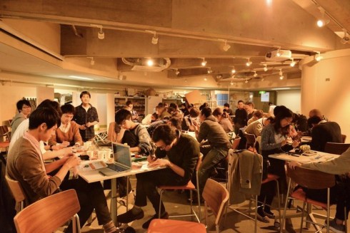 なんだか楽しそうなプログラムの様子。 左奥で立って学生を見ているチェックのシャツの人が坂本啓氏です。