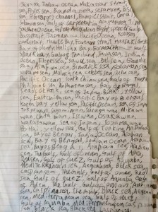 こちらは、ワールドアトラスを1ページ、1ページ見ながら拾って書き出した「世界の海」。